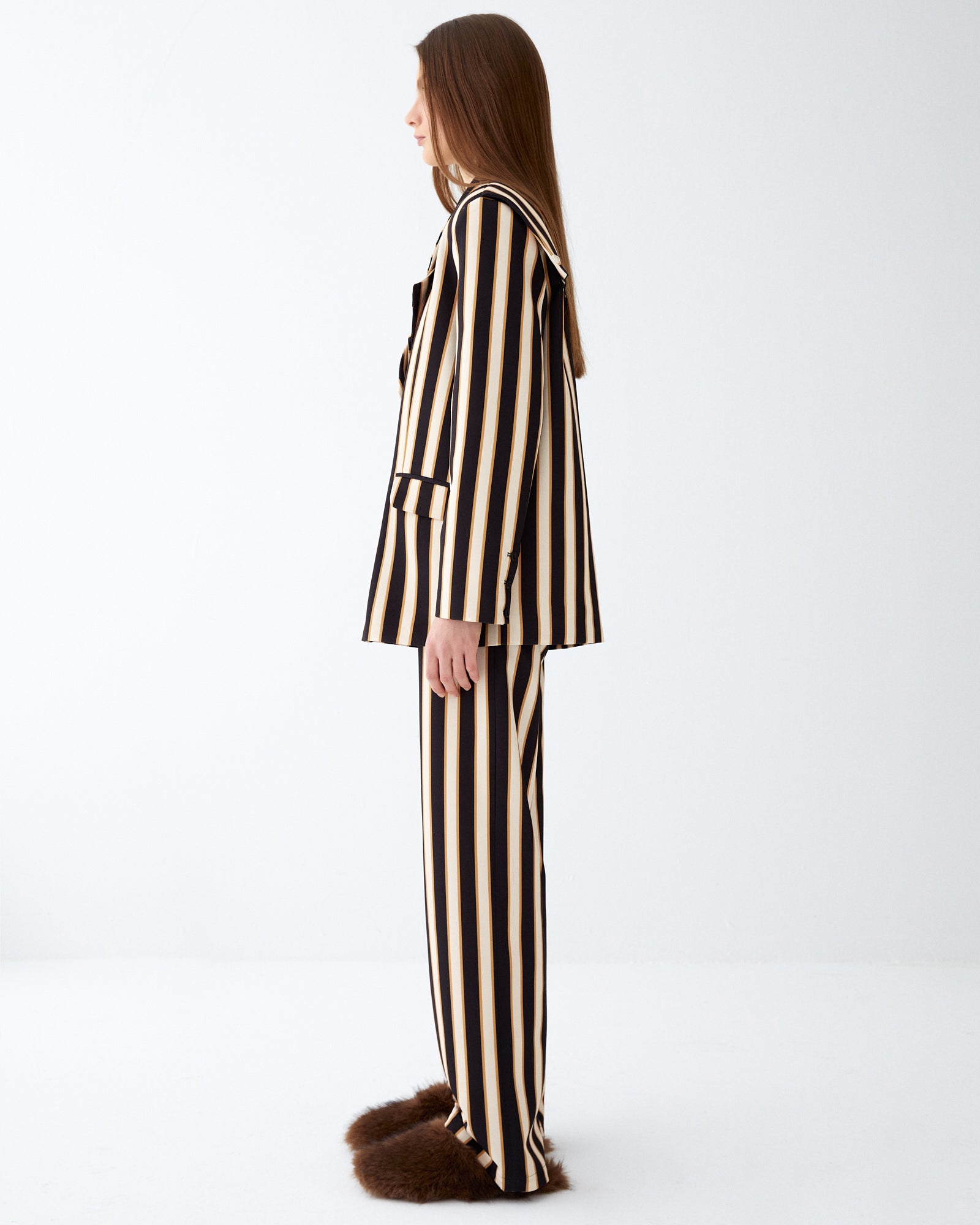 Brown Striped Fou Blazer