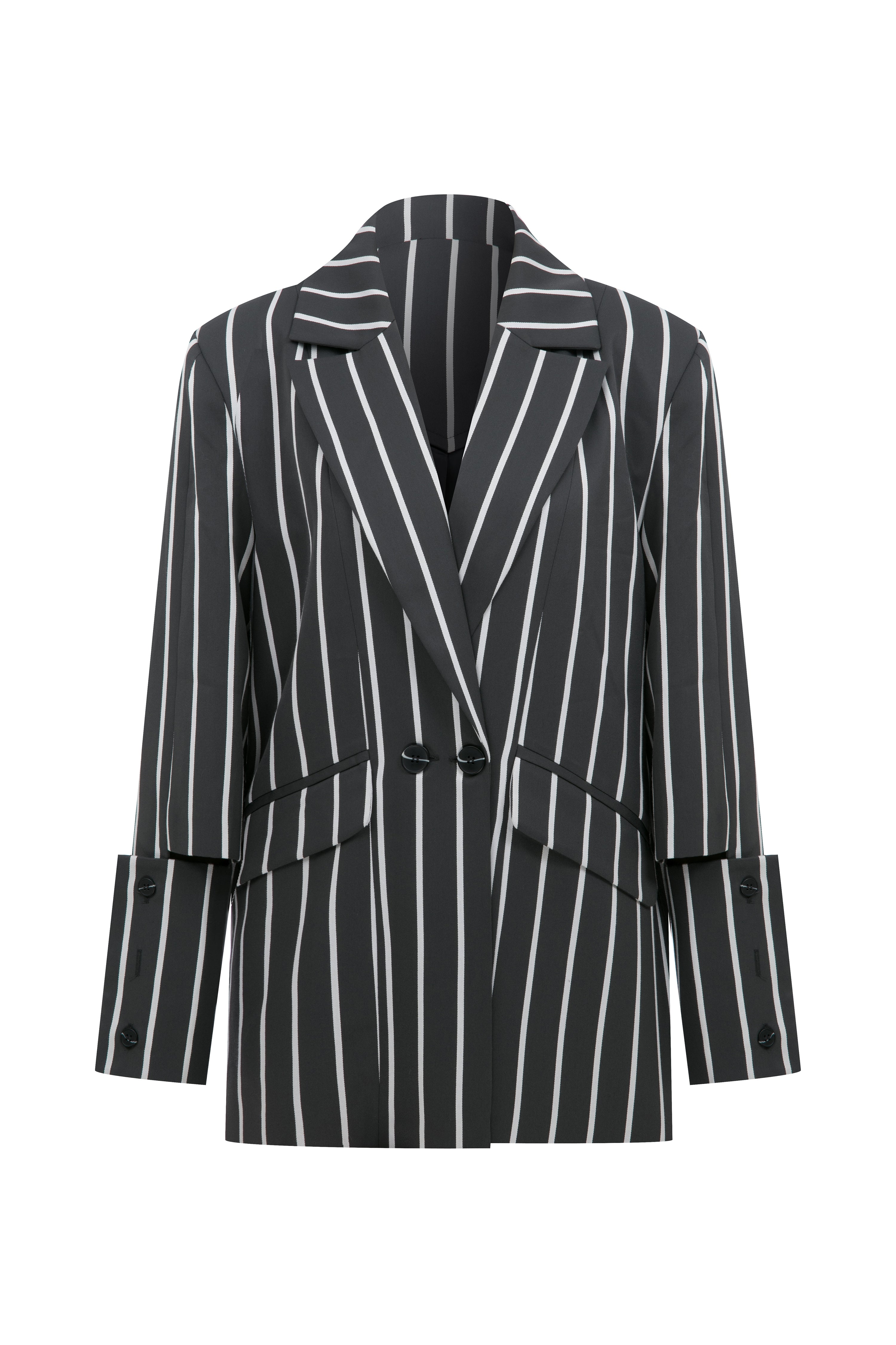 Grey Striped Oversize Blazer