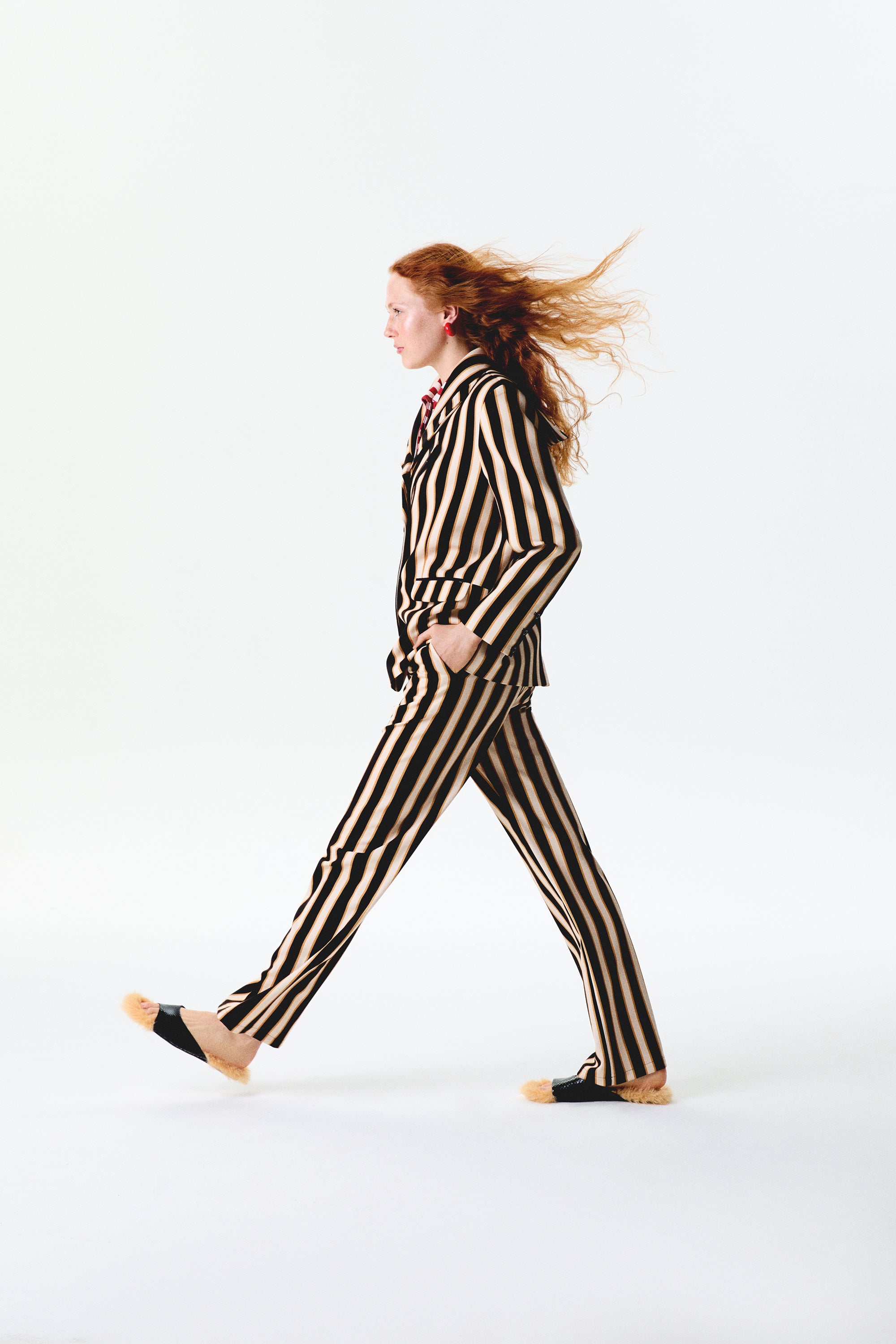 Brown Striped Fou Blazer
